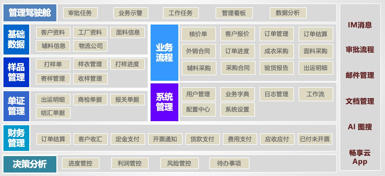 畅想外贸服装解决方案是将企业将分散的订单、复杂的库存、隐形的供应链和繁琐的财务整合为一盘清晰棋局的战略工具。其核心价值在于: