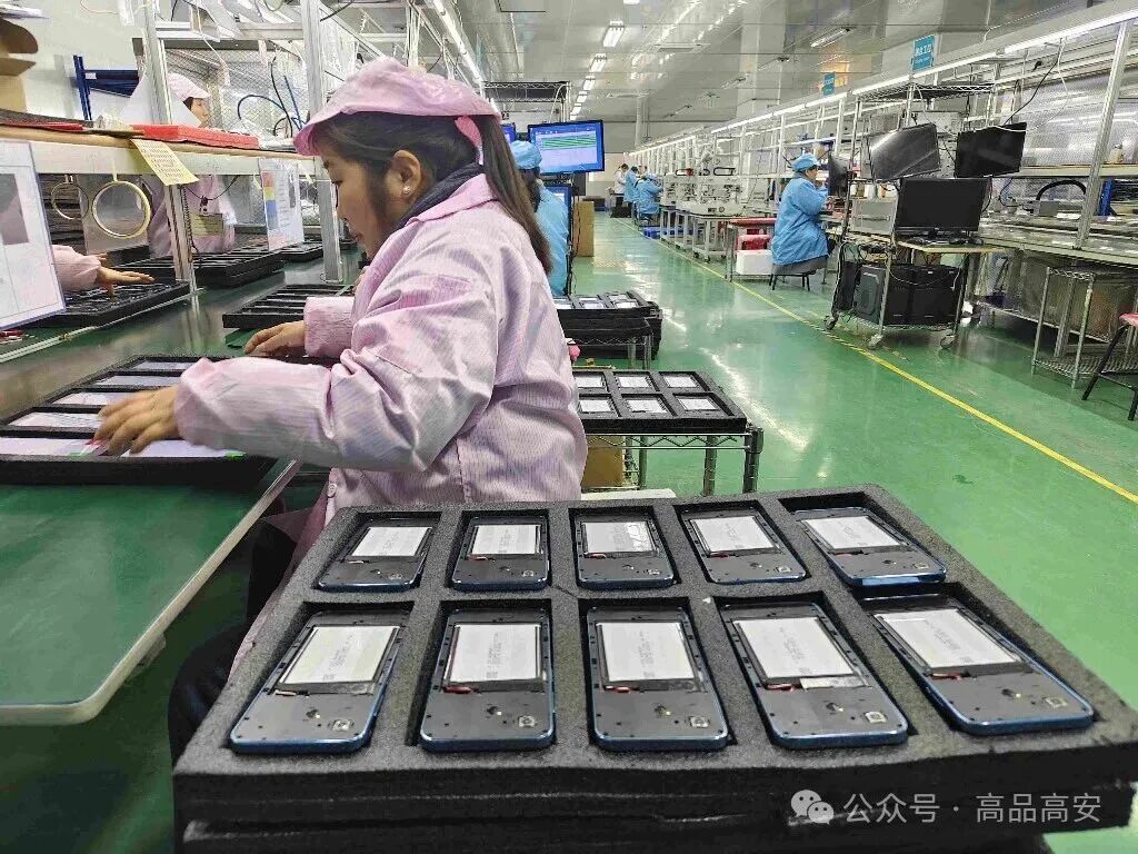 而在高安市璐克斯机械有限公司的数字化车间里,则是另一番“静悄悄”的忙碌,机械手臂精准抓取,自动生产线24小时不间断运转。与此同时,在江西省品信科技有限公司的流水线上,工人们正赶制专为非洲定制的LESIA“充电宝手机”。