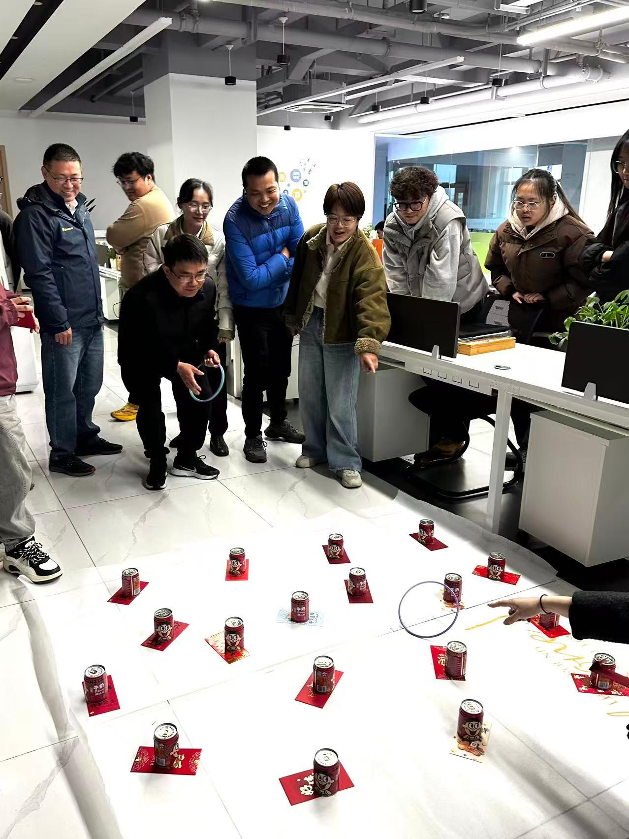 大家摩拳擦掌,有的气定神闲,轻轻一掷便“锁定胜局”;有的则发动“气氛组”攻势,在同事们的加油声中超常发挥。