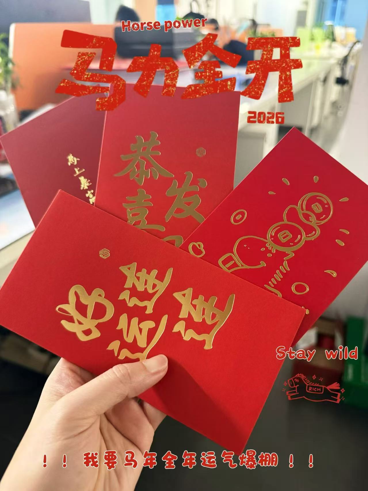 地面上整齐摆放着满满当当的“幸运目标”——一排排象征着 “开门红”的现金红包!