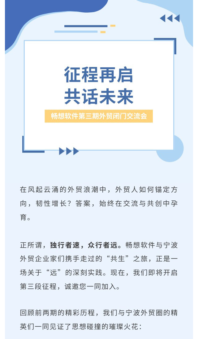 征程再启,共话未来 | 畅想软件第三期外贸闭门交流会,诚邀您入席!
