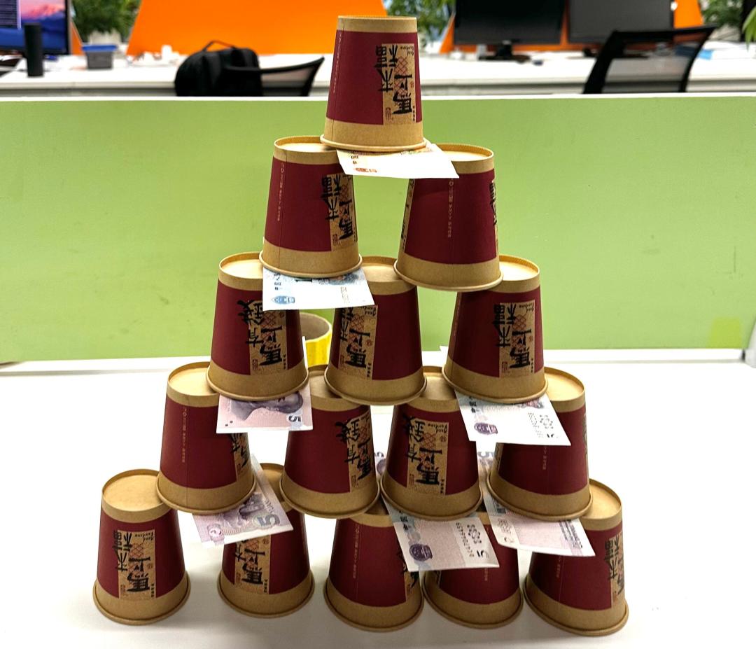 参与者需在规定次数抽出夹在“金字塔”纸杯中间的现金。这看似简单,实则考验着大家的心态与专注力。每当抽中一张大额现金,现场便爆发出雷鸣般的掌声。